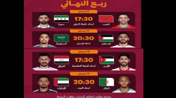 الكشف عن جدول مباريات ربع نهائي كأس العرب 2025