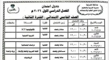 جدول امتحانات الفصل الدراسي الأول للصف الثالث الابتدائي الأزهري في سوهاج