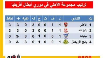 | الفريق | عدد النقاط الحالي | المركز في الدوري |
