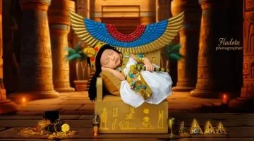 محمد يستوحي من المتحف المصري الكبير جلسة تصوير رضيعة بملابس فرعونية فريدة