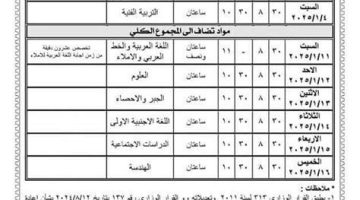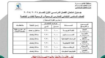 جدول امتحانات الفصل الدراسي الأول للصف السادس الابتدائي