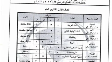 جدول امتحانات الفصل الدراسي الأول للصف الأول الثانوي في محافظة المنيا لعام 2026