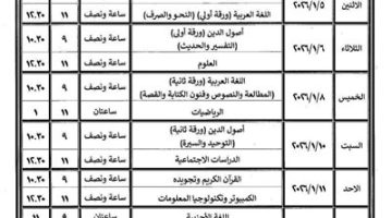 جدول امتحانات الترم الأول 2026 لطلاب الشهادة الإعدادية بالتربية والتعليم