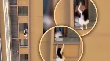 امرأة بملابس النوم تتسلق ناطحة سحاب في هروب جريء من زوجة عشيقها